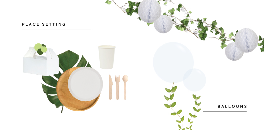 *Five Star Products: White Lunch Box, White Round Paper Plate, White Paper Cup, White Honeycomb Balls, 60cm Latex Balloons.