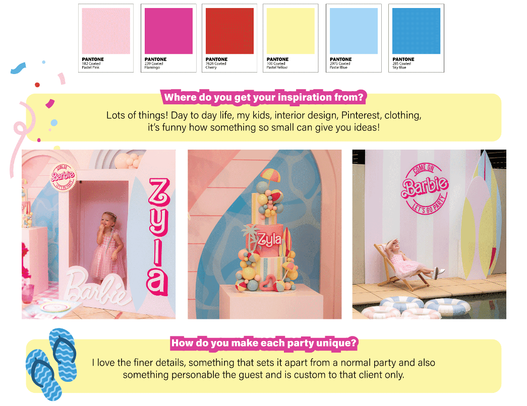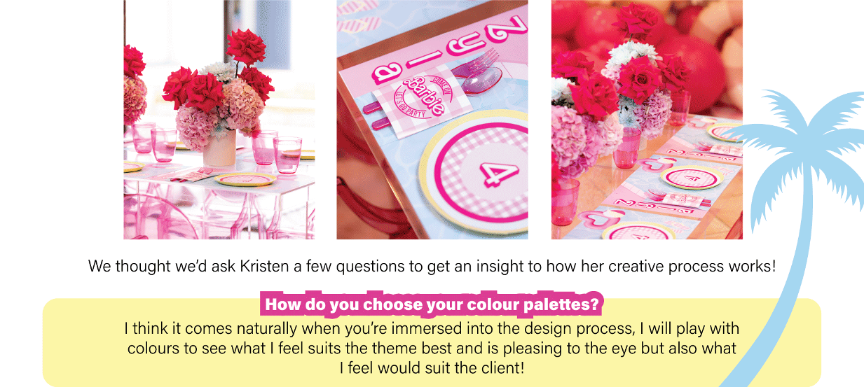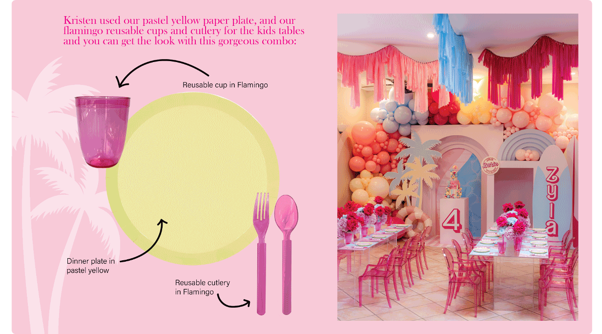 With this Barbie Poolside themed birthday, Kristen's colour palette features our cool colours with warm hues - a striking combo that's fun and fresh!